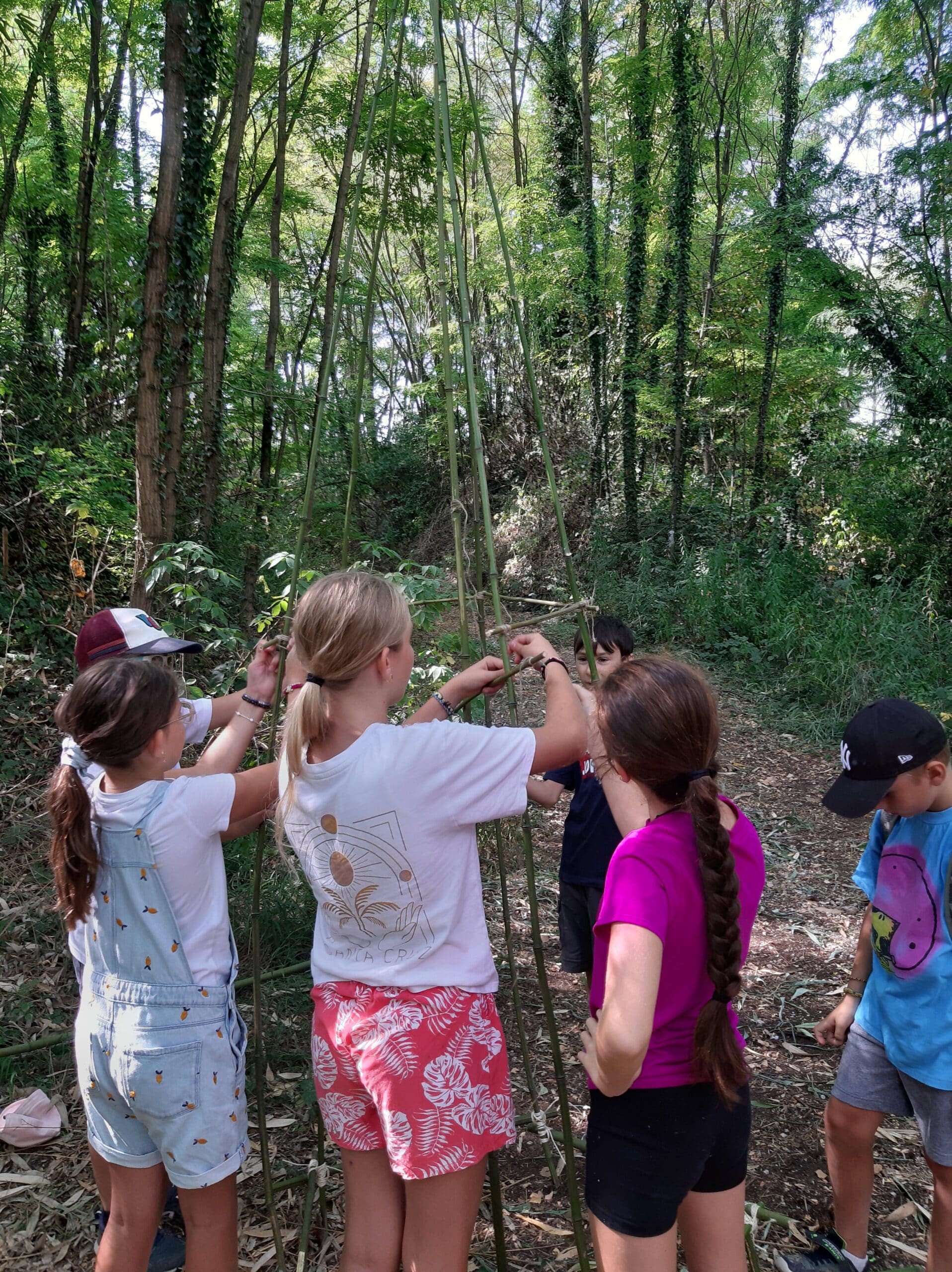 - sorties en forêt, construction de cabanes